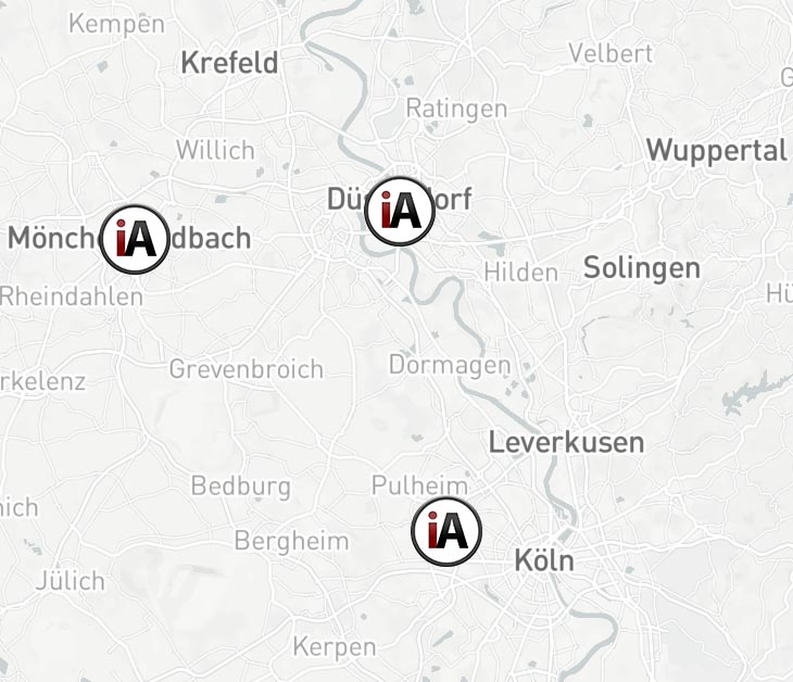 | Düsseldorf | Düsseldorf Bilk | Düsseldorf Derendorf | Köln | Mönchengladbach | Grevenbroich | Kaarst | Neuss |