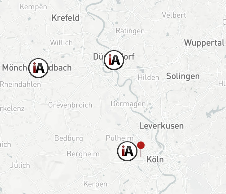 | Köln | Köln Chorweiler | Köln Hürth | Köln Lövenich | Köln Mülheim | Köln Nippes | Köln Porz | Köln Rodenkirchen | Köln Sülz | Köln Widdersdorf | Bedburg | Bergheim | Grevenbroich | Rommerskirchen | Pulheim |