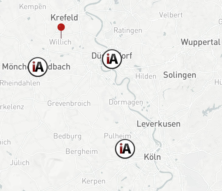 Der nächstgelegene Standort für Willich wäre für Sie Mönchengladbach. Unser Store befindet sich dort in sehr zentraler Lage. Die Handy Reparatur Werkstatt befindet sich in der nähe vom Mönchengladbacher Hauptbahnhof. Ein Displayschaden haben wir in 15-30 Minuten repariert. Die Innenstadt und das Minto befinden sich in der Nähe. Dort können Sie während der Reparatur noch andere Aufgabe erledigen.